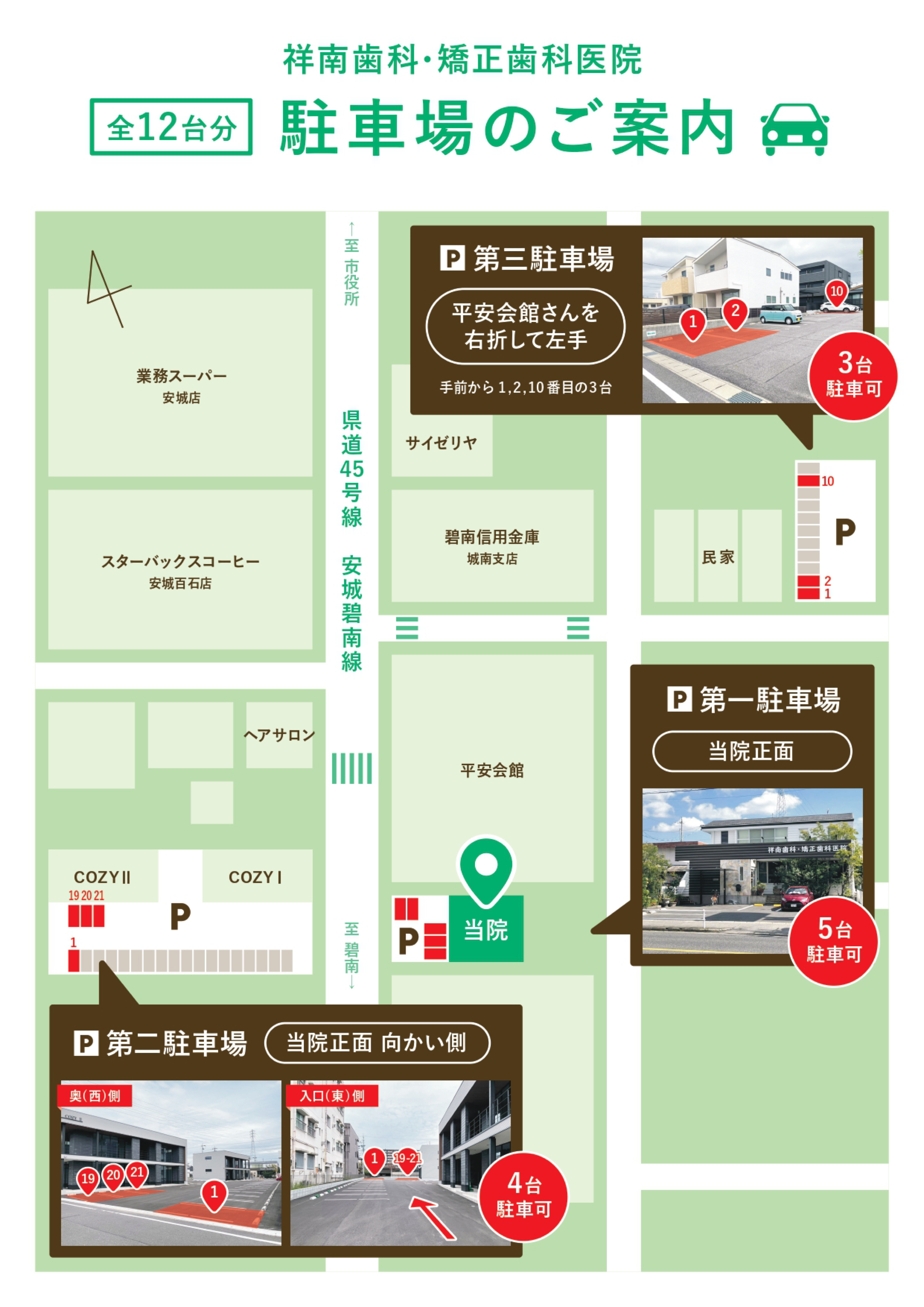 また、これまで「第二駐車場」としてご案内していた平安会館さんを右折して左手の駐車場は、「第三駐車場」として名称が変更となりました。